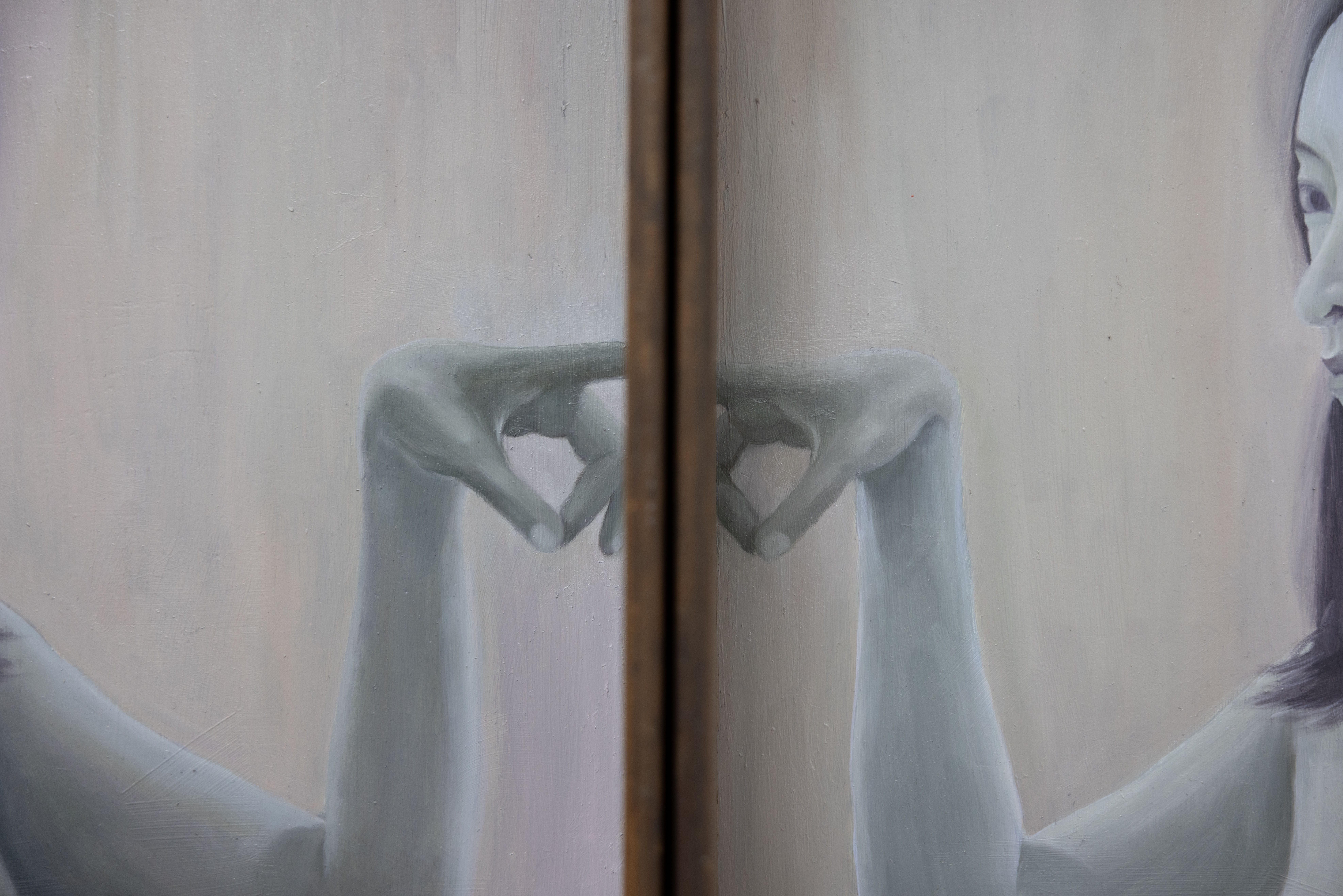 Observer, oil on wood drawer, 2024, 80x47x12cm